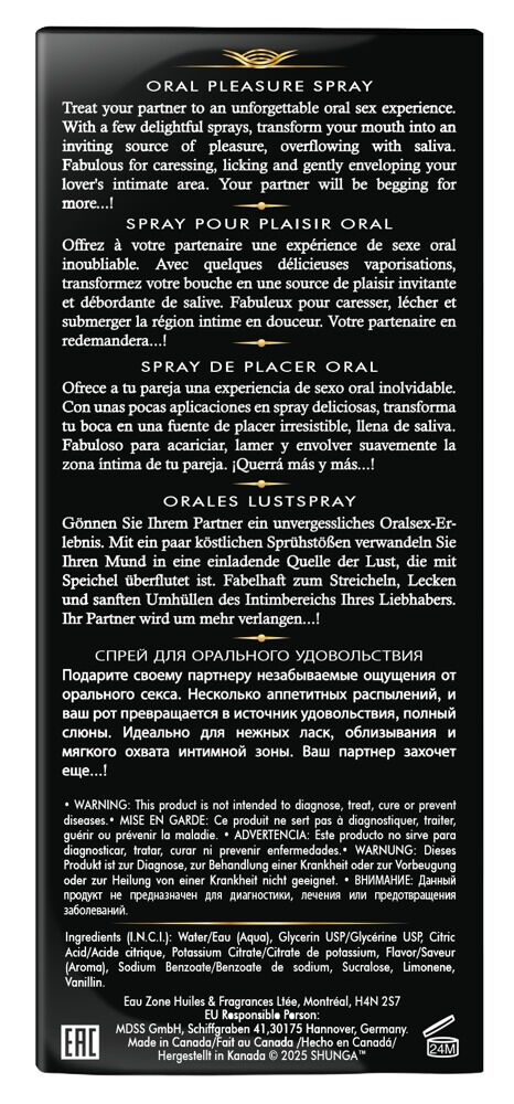 Waves of Pleasure Exotic ustni sprej znamke Shunga spremeni usta in grlo v sadni vir užitka za nepozabno oralno izkušnjo. Eksotični sadni okusi so popolni za igrivo delo z jezikom, globoko poljubljanje in intimno draženje. Pred oralnim seksom ga preprosto razpršite v usta oziroma grlo.