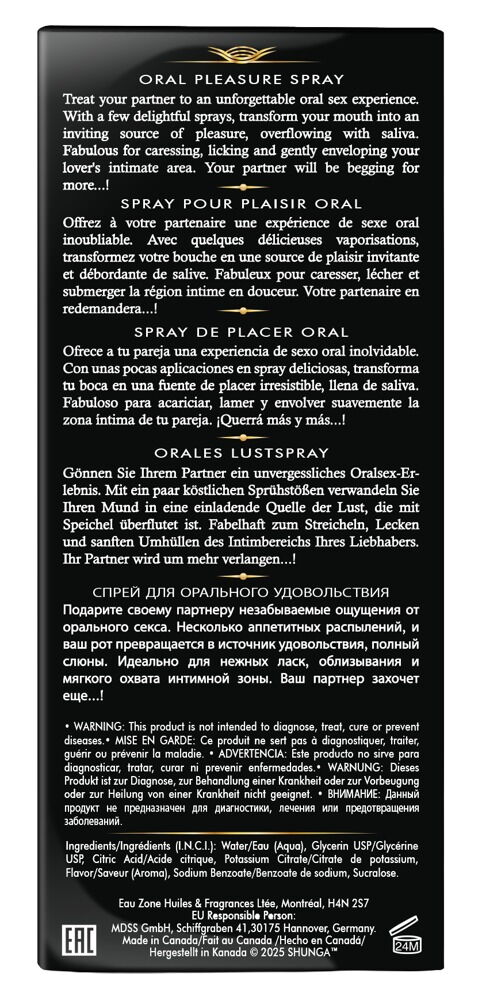 Waves of Pleasure Strawberry Wine ustni sprej znamke Shunga spremeni usta in grlo v sadni vir užitka za nepozabno oralno izkušnjo. Eksotični sadni okusi so popolni za igrivo delo z jezikom, globoko poljubljanje in intimno draženje. Pred oralnim seksom ga preprosto razpršite v usta oziroma grlo.